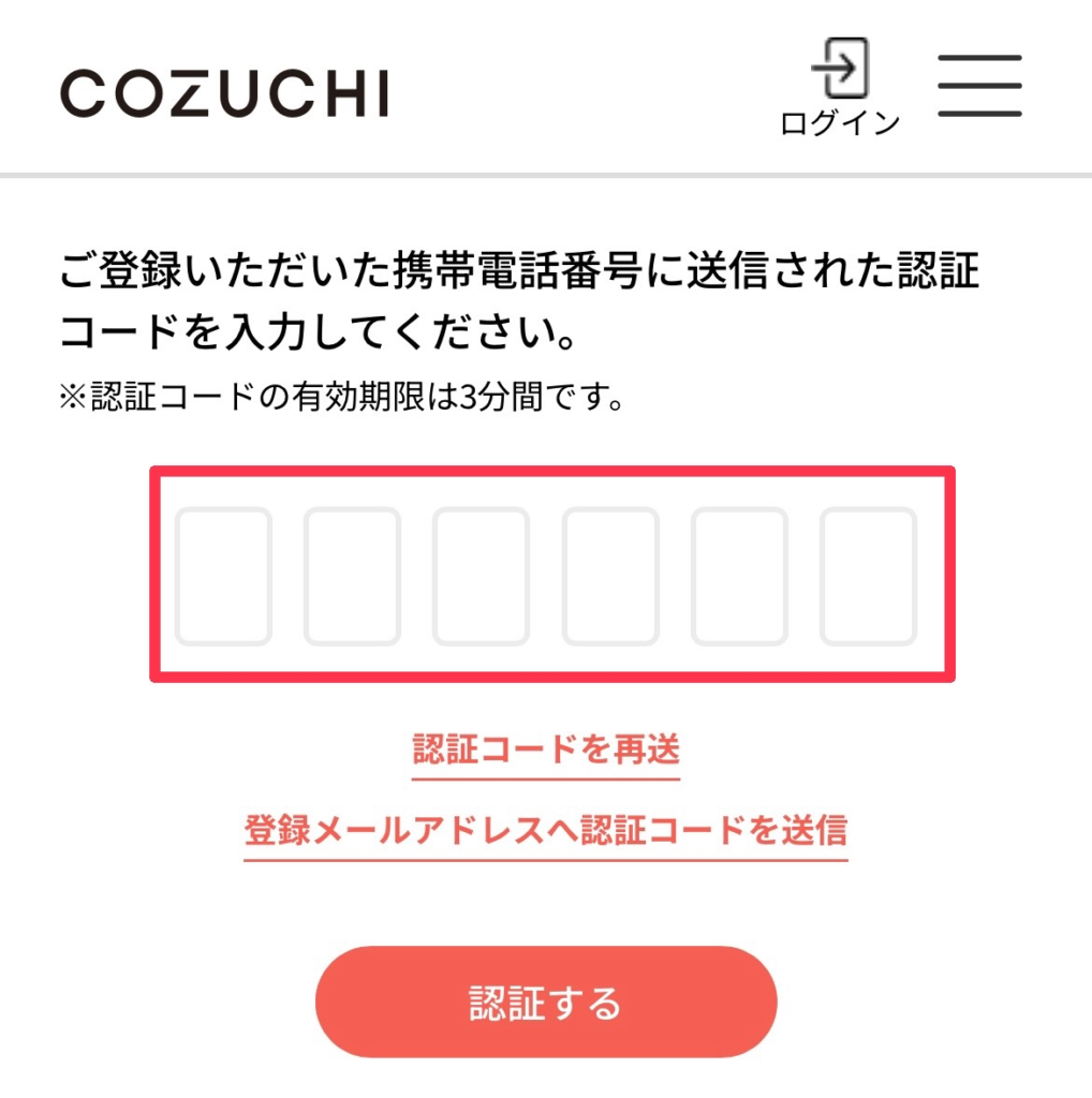 携帯電話番号に届いた認証コードを入れたら、会員登録は完了です!