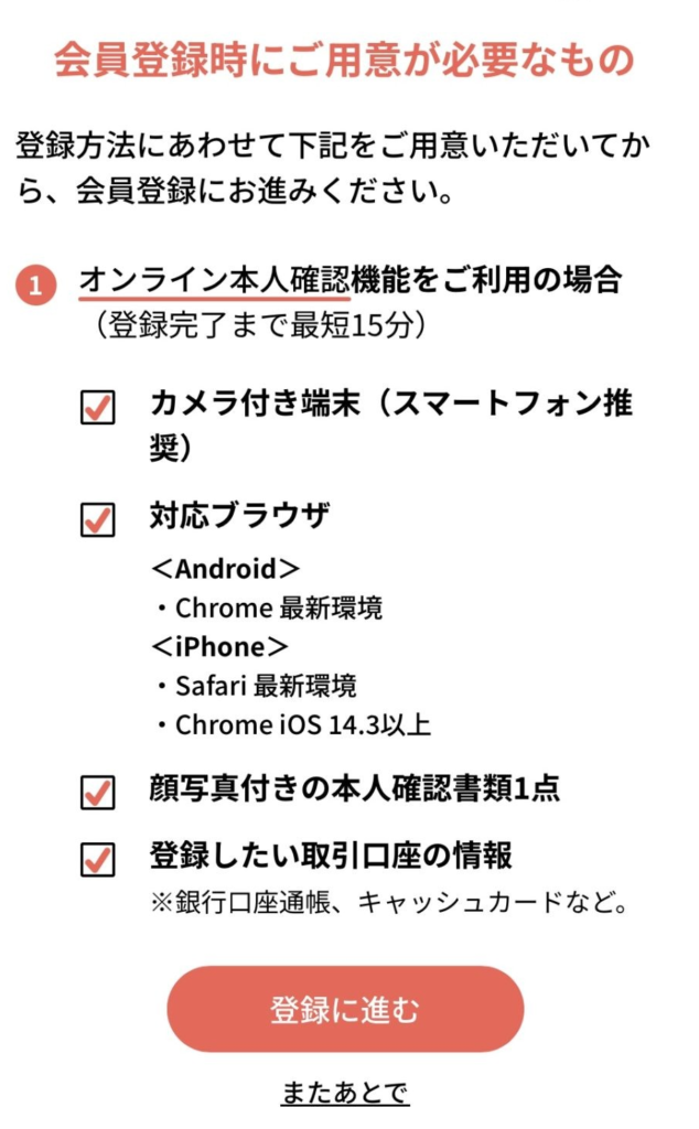 公式サイトにアクセスしたら、「無料会員登録」をタップして、「登録に進む」を押します。