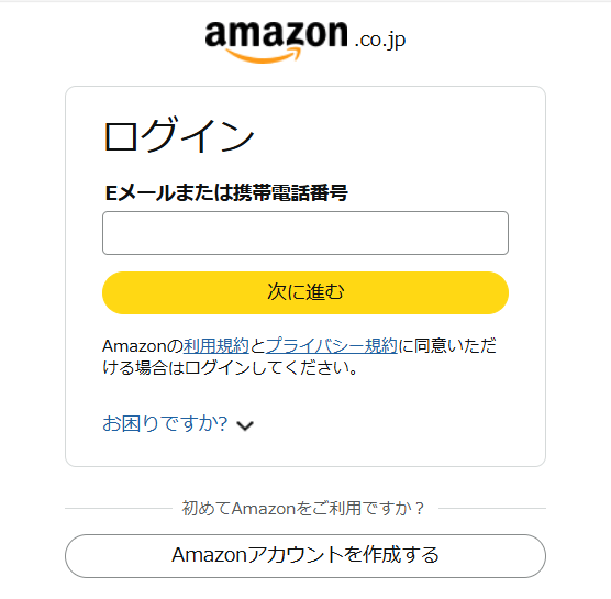 もしアカウントを作成できていない場合は、「Amazonアカウントを作成する」からアカウント作成が可能です。