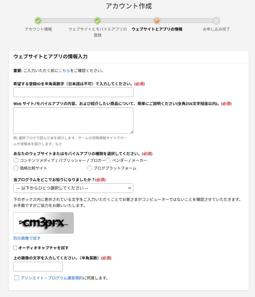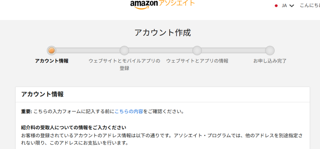 Amazonアソシエイトへの登録方法は、下記のとおりです。