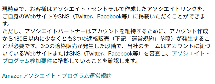 Amazonアソシエイトは、登録から180日以内に商品を3件売らなければ審査に通らないよ!