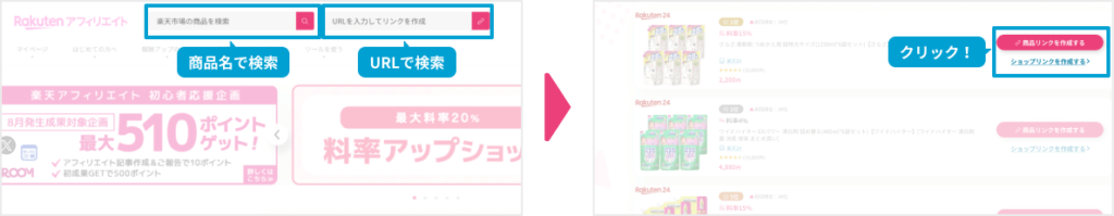 ③おすすめしたい商品を決めて、紹介リンクを発行