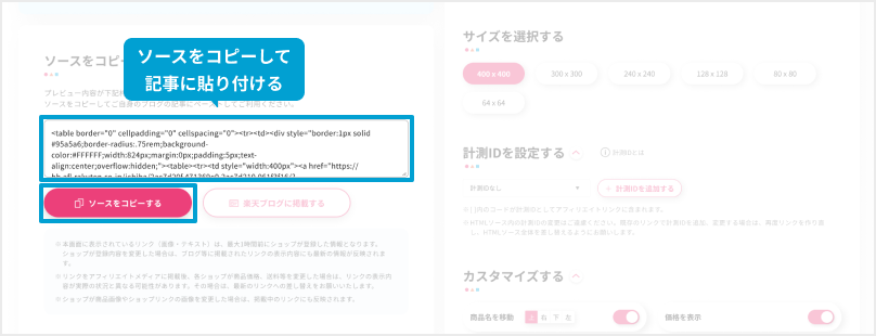 生成されたアフィリエイトリンクをコピーして投稿に貼り付けましょう!